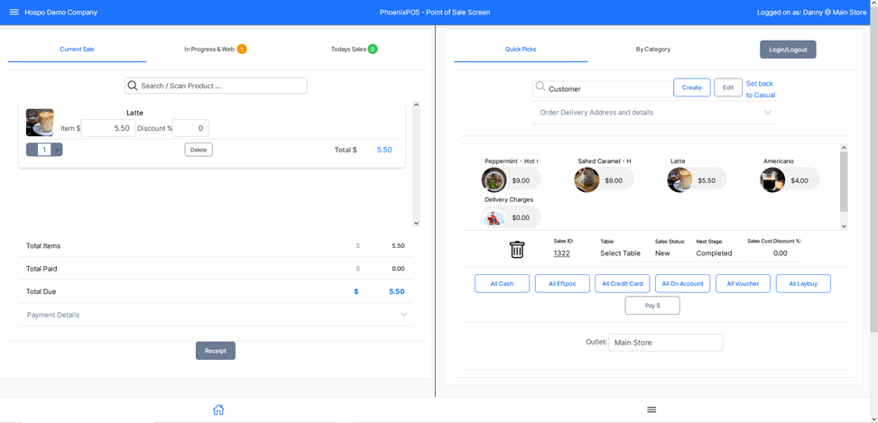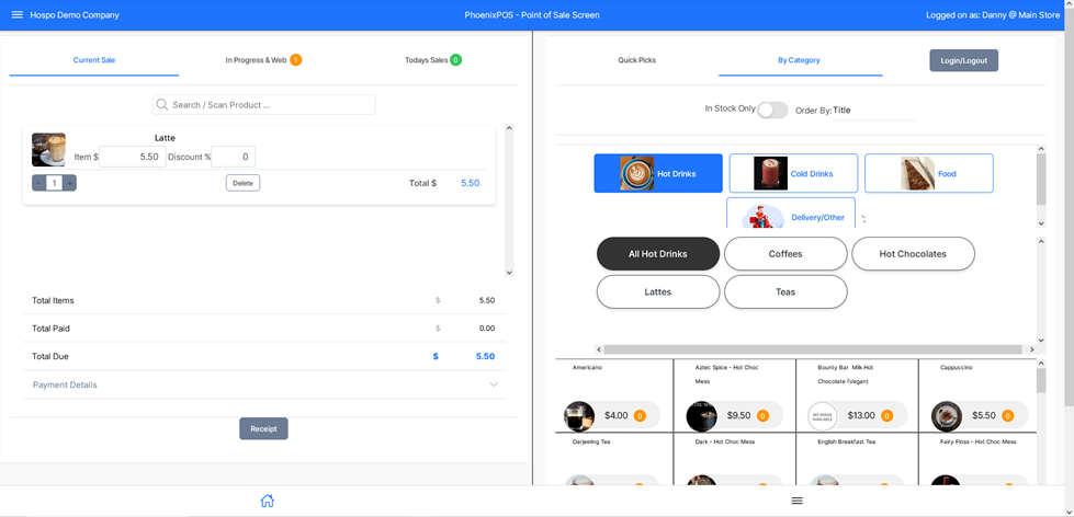This is the main Point of Sale Screen. You can easily add items to the sale and process the order.