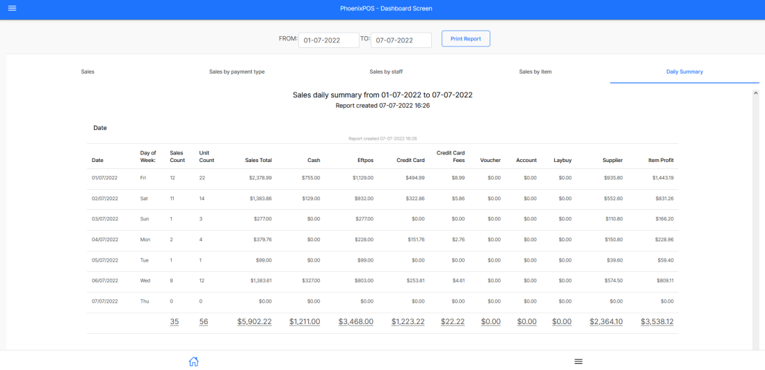 There are easy to use and simplified reports to show you sales history, sales b y payment type and other key business information.