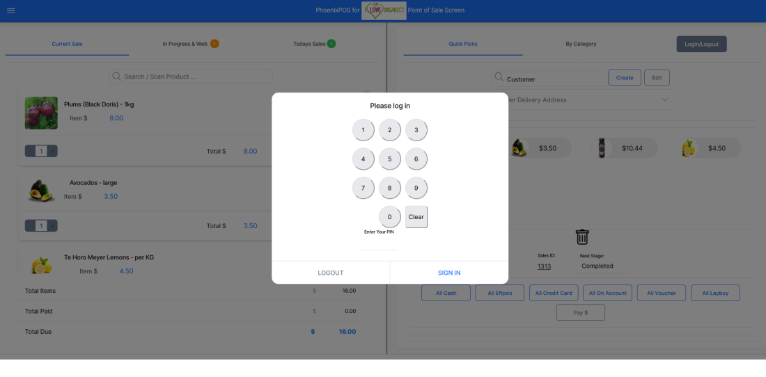 Point of Sale Screen